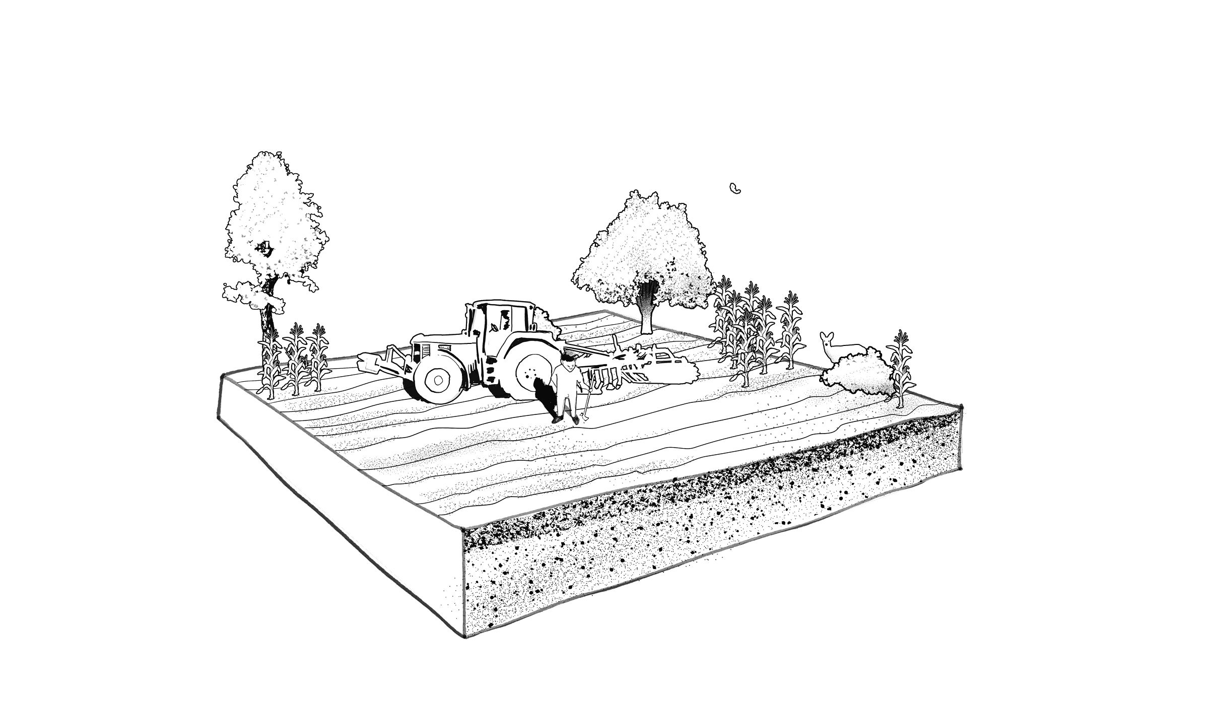 Hinzu kommen die Pestizide, die viele Bodenorganismen schädigen, der Pflug, der ihren Lebensraum im wörtlichen Sinne auf den Kopf dreht, und die immer schwereren Maschinen, die den Boden verdichten. Bis der Boden zu einem bloßen Substrat verkommt.