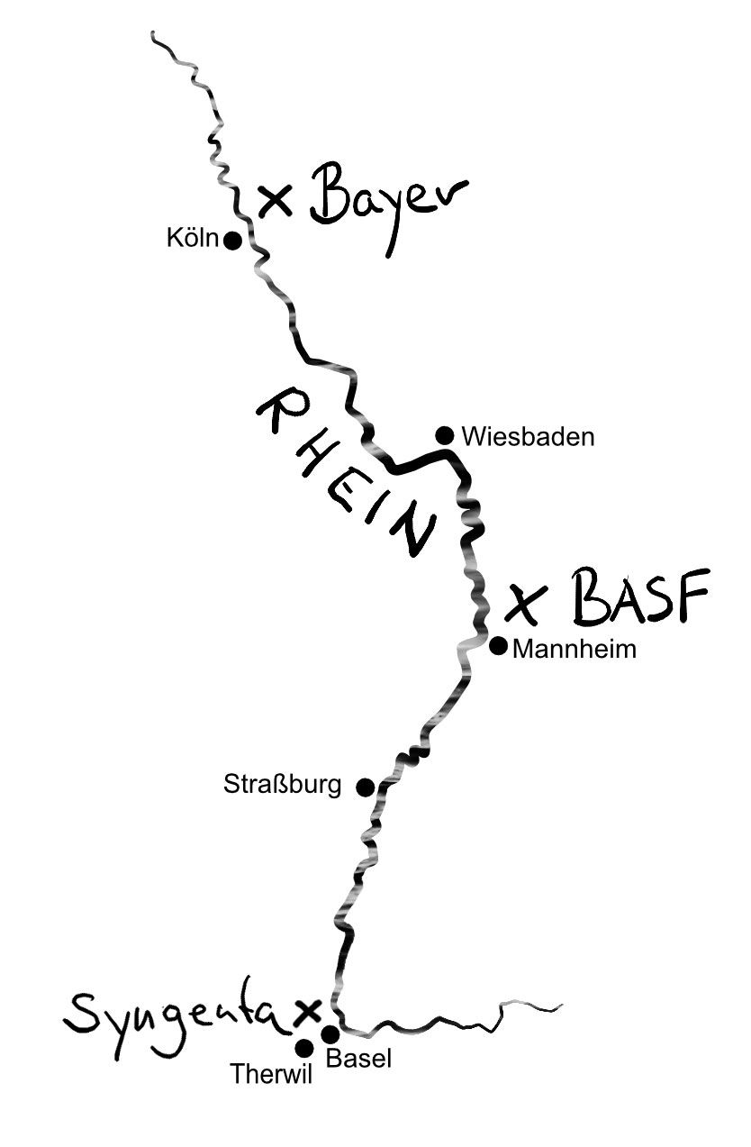 Eine Geschichte über den Zustand des Bodens ist deshalb auch zwingend eine Geschichte der agrochemischen Industrie. Folgt man dem Rhein stromaufwärts, führt die Reise vorbei an den Stammsitzen der drei europäischen Chemieriesen, deren Forschung auch die Zukunft des globalen Agrarsystems maßgeblich prägen wird. Allein der Weltmarkt für Pestizide soll in den kommenden zehn Jahren von derzeit knapp 80 Milliarden auf fast 130 Milliarden Euro wachsen.